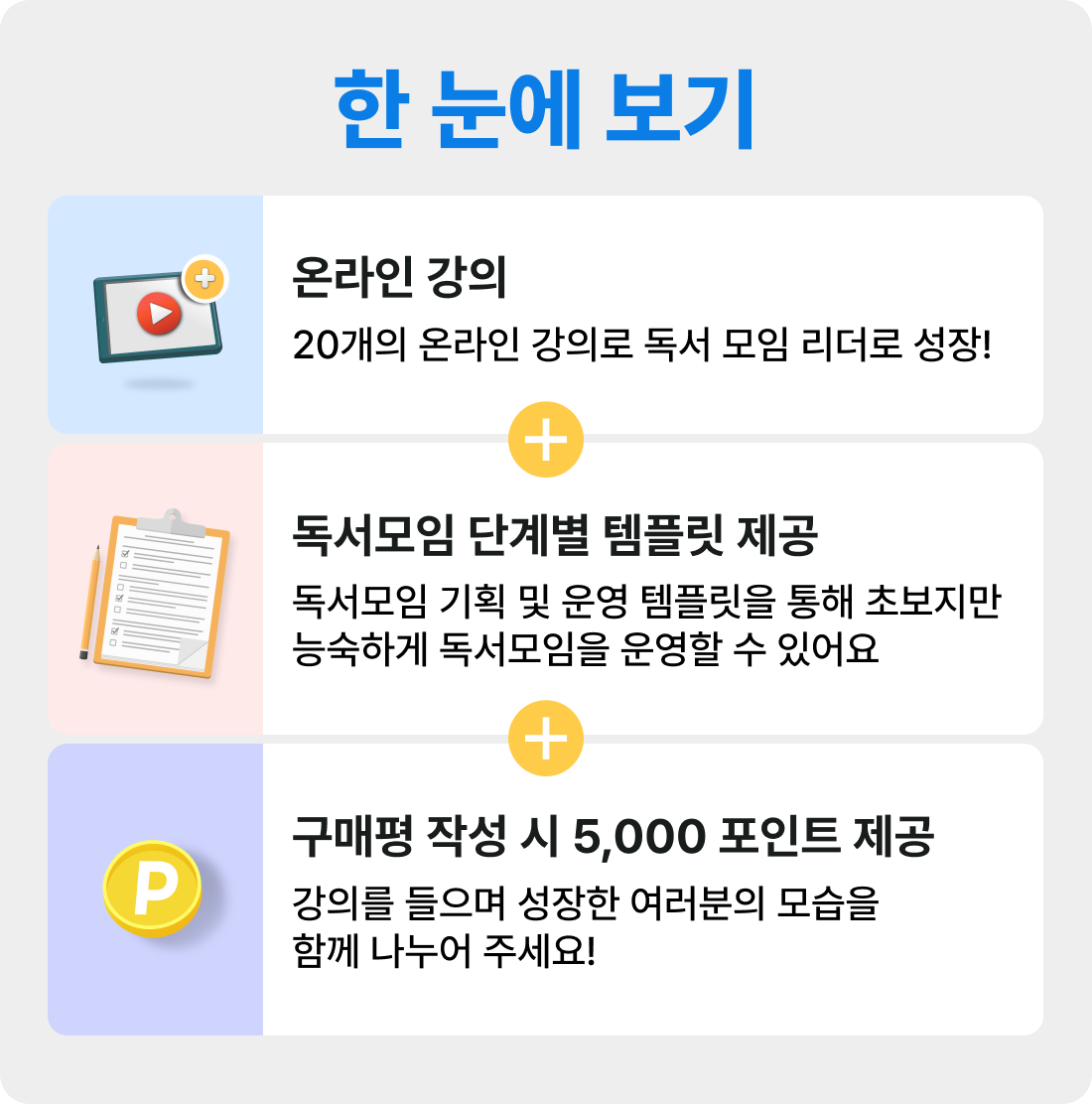 독서모임 리더가 되어 나와 구성원이 함께 성장하는 이타성의 성장을 경험해 보세요!