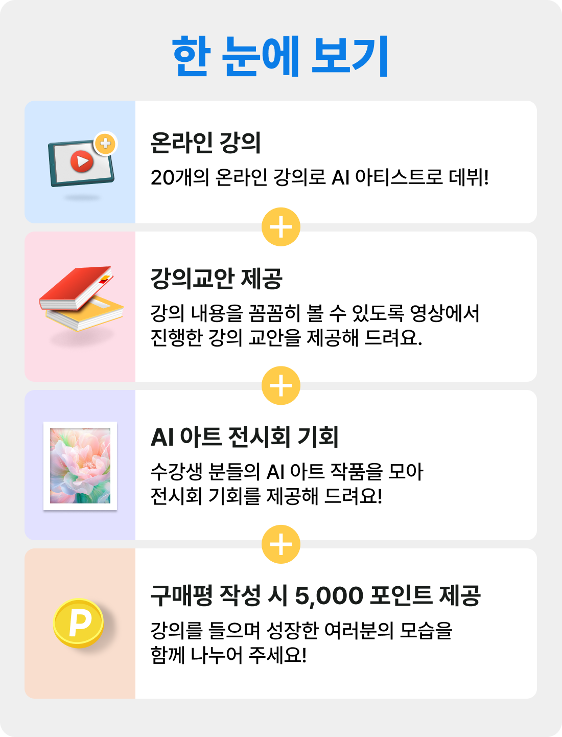 AI 아트에 관심이 있지만, 그림을 직접 그리기 어려웠거나 처음 접하시는 분들을 위한 최고의 기회입니다.