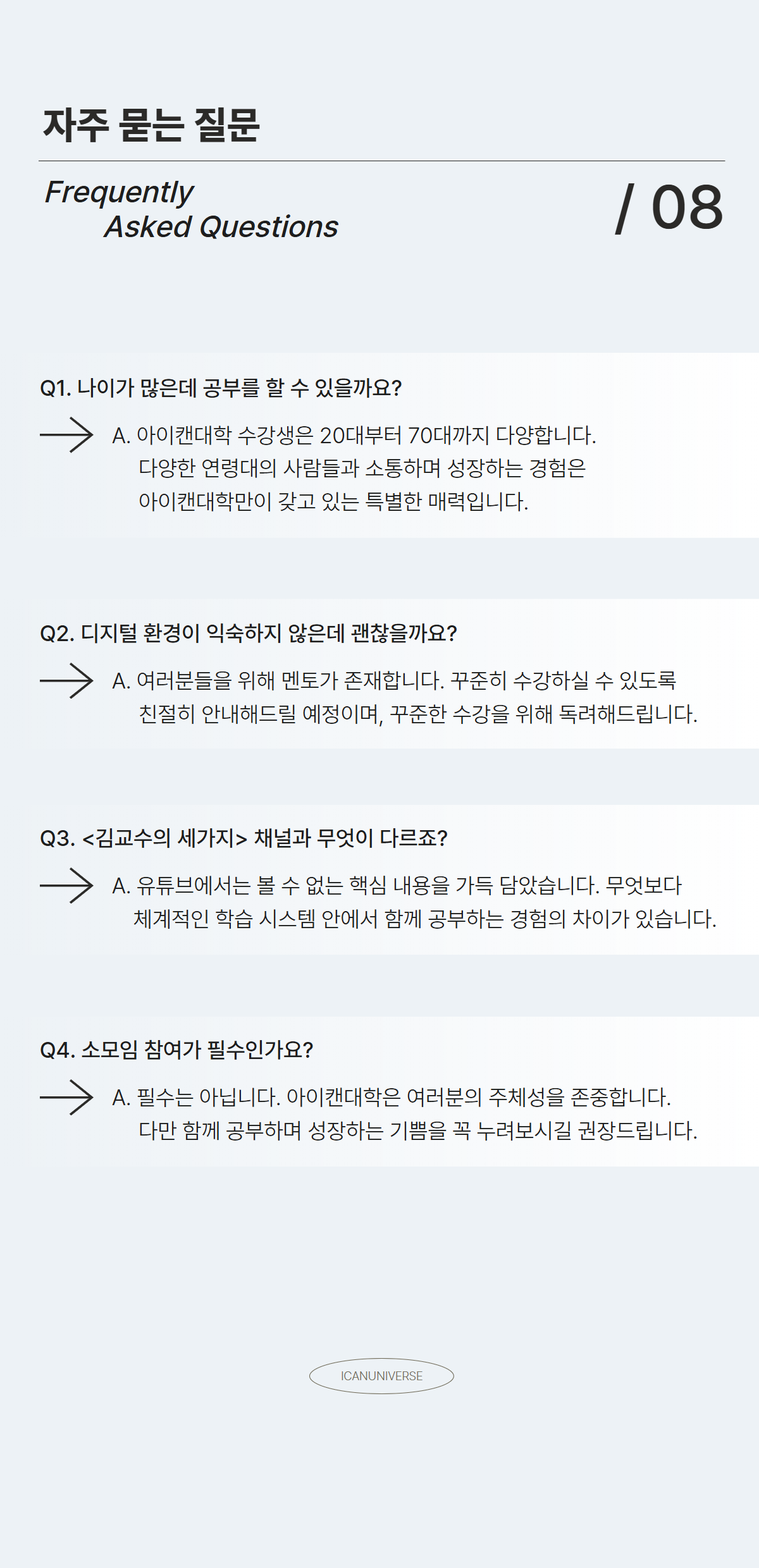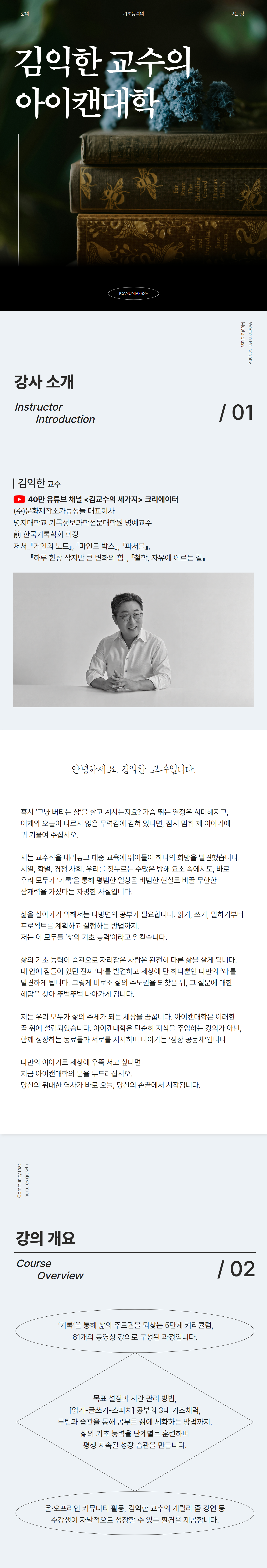 ✅수강 방법 : 강의 구매 후 [내 강의실] > [김익한 교수의 아이캔대학]에서 수강하실 수 있습니다